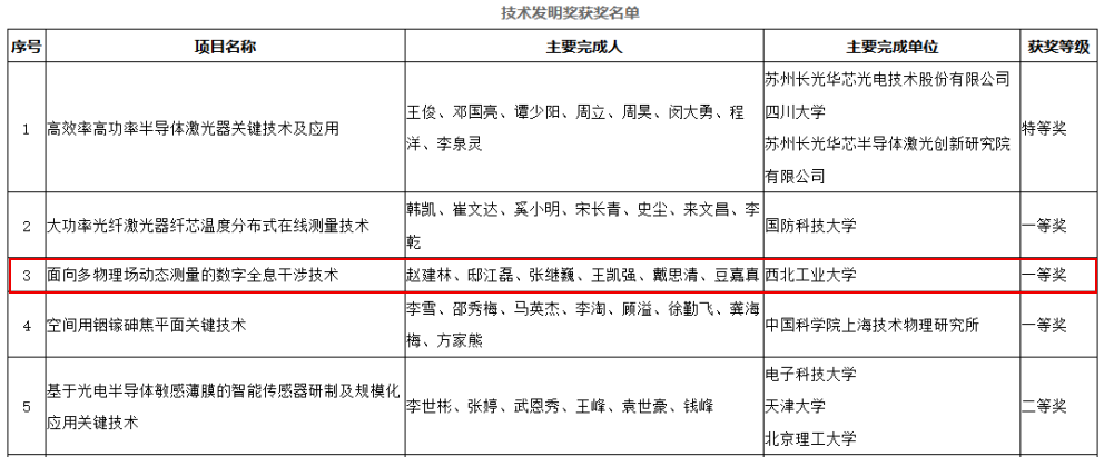 赵建林教授团队完成的项目“面向多物理场动态测量的数字全息干涉技术”荣获技术发明一等奖,主要完成人包括赵建林、邸江磊、张继巍、王凯强、戴思清、豆嘉真。这是澳门金沙娱乐城官网