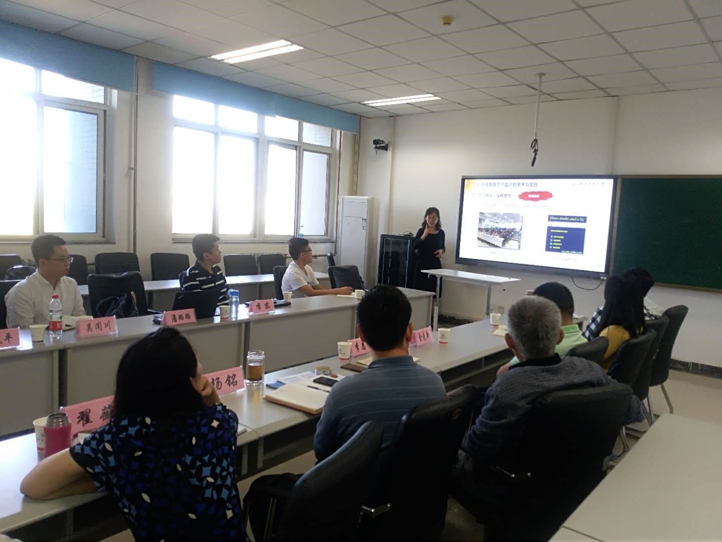 大家听得津津有味,都纷纷向潘老师讨教经验,面对各位老师提出的问题潘老师认真解答,老师们也一一发表自己对课程思政的理解。